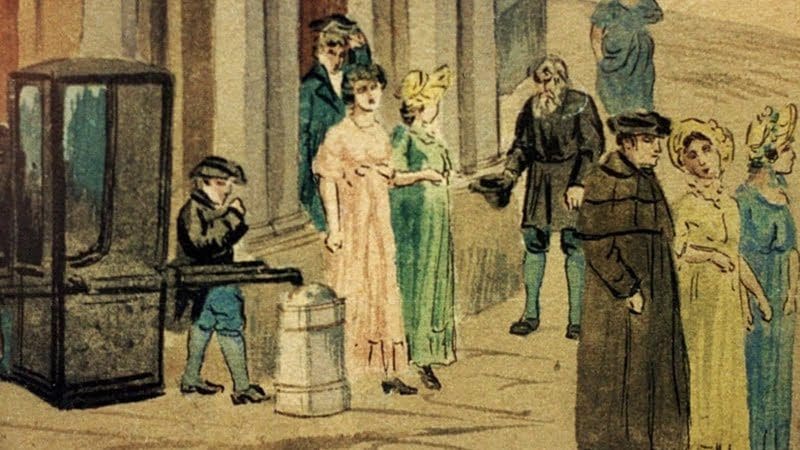 لوحة منسوبة لهتلر تظهر شارعا بالحي القديم في فيينا مع أشخاص يرتدون ملابس القرنين 18 و19
