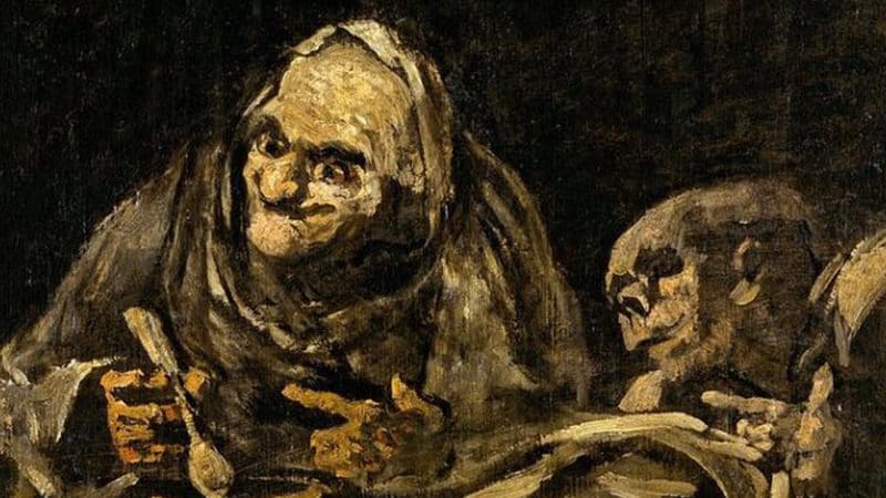 لوحة رجلين عجوزين يأكلان حساء