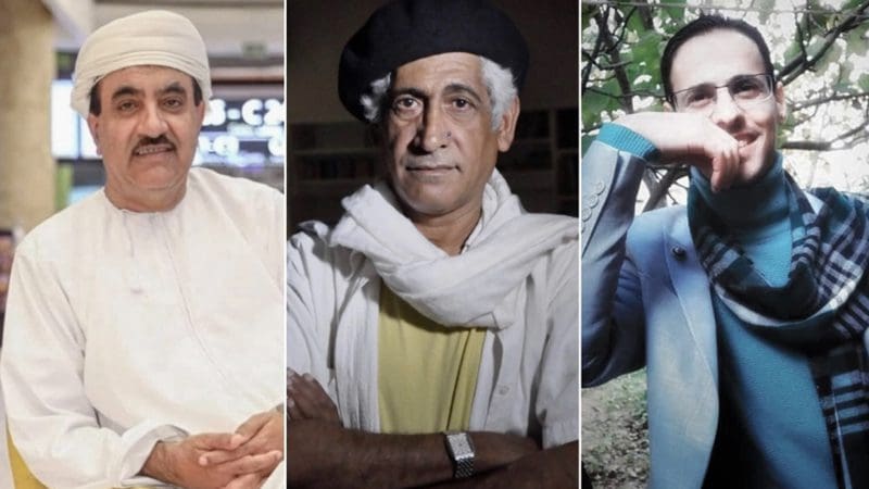 الشاعر الليبي مفتاح العلواني (يمين) و الشاعر العماني المقيم في السويد زاهر الغافري (وسط) و عبد الرزاق الربيعي