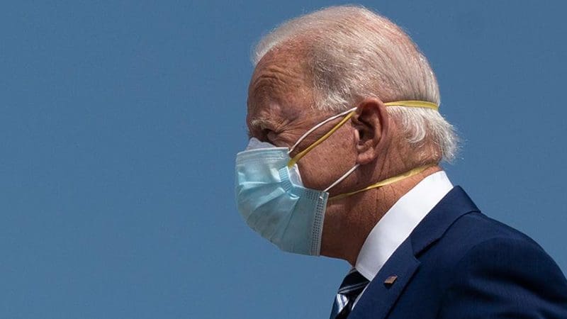 الرئيس الأميركي جو بايدن مرتديا قناعين