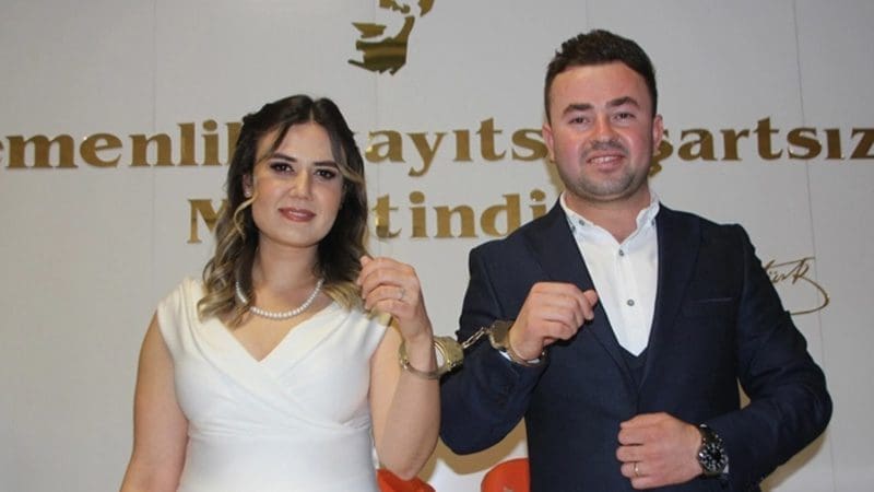 خلال عقد قرانهما.. أصفاد على معصمي عروسين بدل المجوهرات