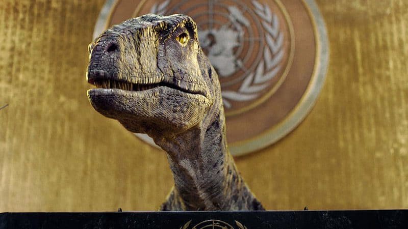 شاهد ديناصورًا يقتحم قاعة الجمعية العامة للأمم المتحدة!