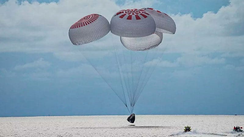 شاهد.. الرحلة الأولى من نوعها لحظة هبوط أول كبسولة فضائية جميع روادها سياح