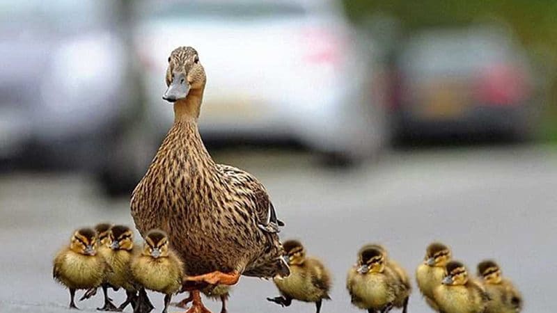 حيلة غريبة.. لمساعدة صغار البط على قطع طريق مزدحم