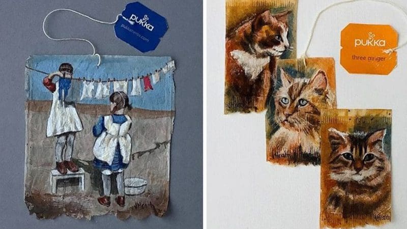 فنانة ترسم على أكياس الشاي خلال الإغلاق العام