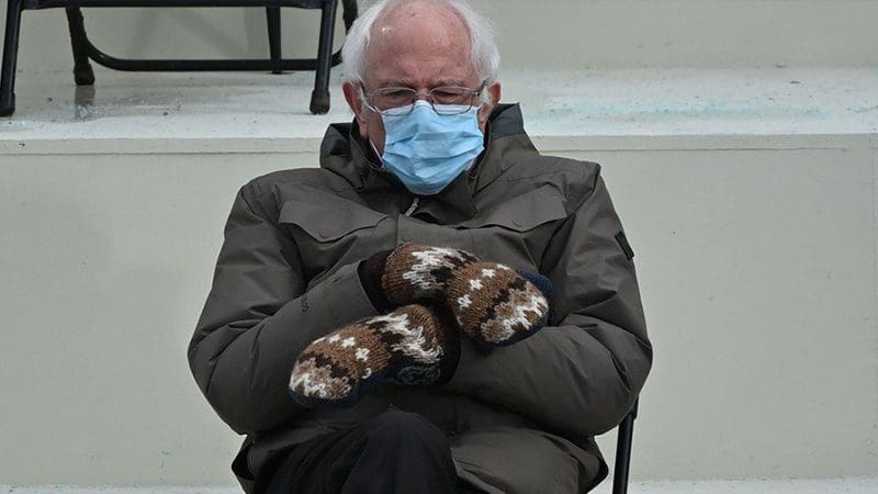 ساندرز ارتدى -خلال حفل تنصيب بايدن- معطفًا وقفازًا من الصوف المعاد تدويره