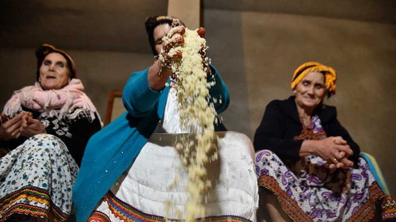 أمازيغيات يحضرن الكسكس احتفالا برأس السنة الجديدة بقرية آيت القصيم شرق العاصمة الجزائر