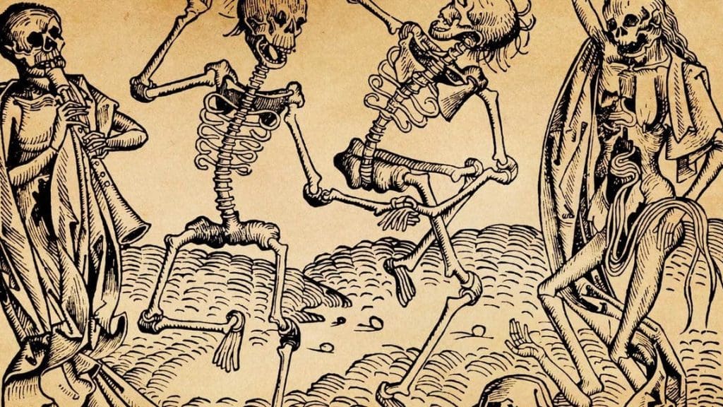 لوحة بعنوان رقصة الموت اقتبست من انتشار الطاعون الأسود بالقرن الرابع عشر