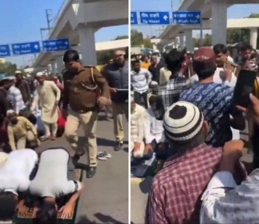 شاهد: شرطي هندي يعتدي على مصلين أثناء أدائهم صلاة الجمعة