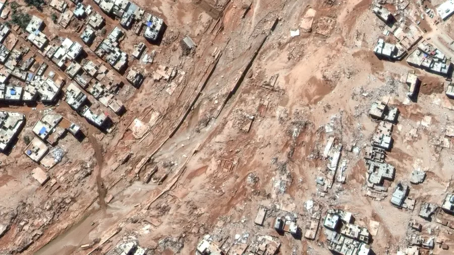 مشاهد من الأقمار الصناعية تظهر مناطق ليبية اختفت بأكملها