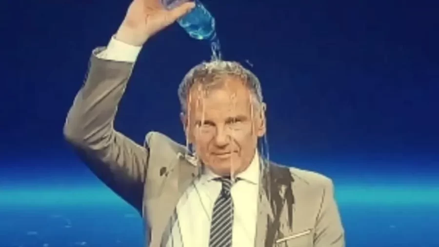 لفت أنظار مستمعيه.. إعلامي يسكب الماء على رأسه في نهاية النشرة