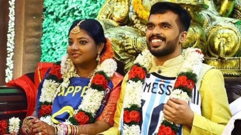 عروسان يرتديان قميصي ميسي ومبابي بدلا من ملابس الزفاف “صور”
