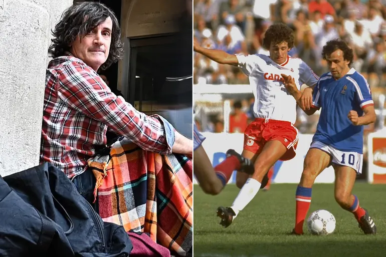 جيمس يحاول قطع الكرة من بلاتيني في مونديال المكسيك قبل أن يتحول لمتشرد يتسول بشوارع لندن (ديلي ميل)