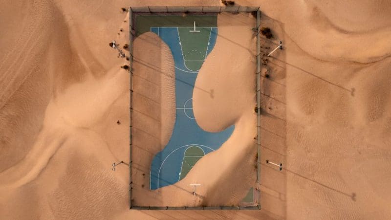 من زاوية فريدة.. مصور يوثق ملعب كرة ابتلعته الرمال