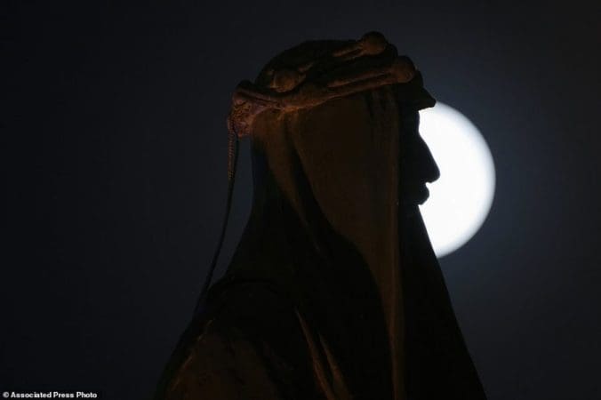 القمر العملاق فوق تمثال الملك فيصل الثاني في سماء بغداد "ديلي ميل"