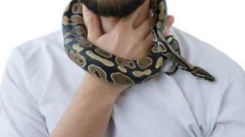 ثعبان عملاق ينقض على صاحبه والشرطة تتدخل باللحظات الأخيرة