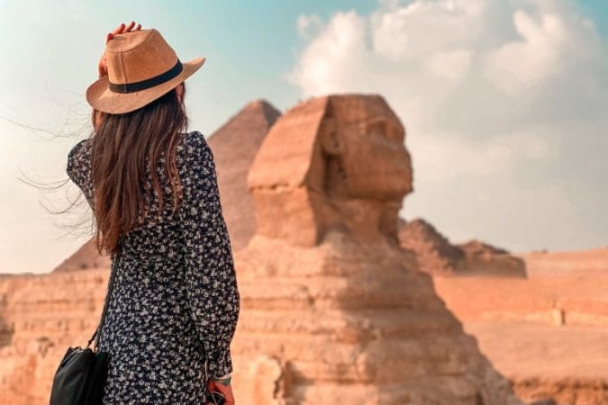 مصر غنية بعشرات الأماكن السياحية والأثرية التي تجذب الزوار والسياح من كافة أنحاء العالم ومنها أبو الهول وأهرامات الجيزة (غيتي)