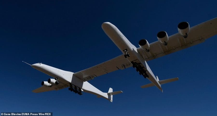 شاهد أكبر طائرة في العالم “بجسمين توأمين” تنجح بالتحليق في الجو