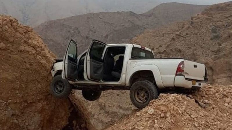 شاهد واحكم.. فيديو يحبس الأنفاس لسيارة علقت بين سفحي جبل
