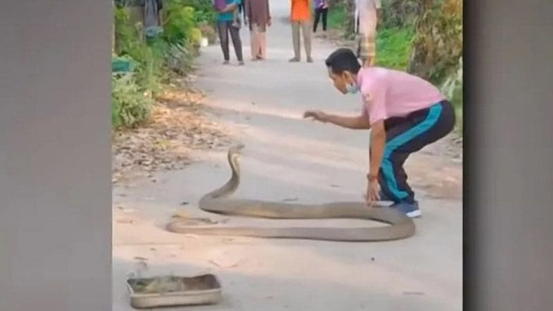 فيديو خطير.. يمسك كوبرا عملاقة بيديه فقط