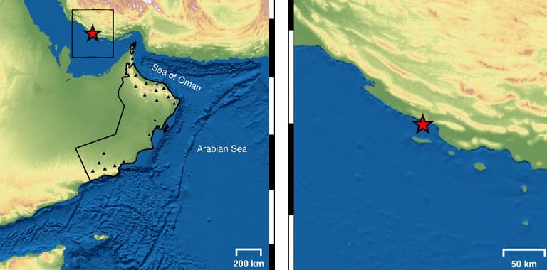 زلزال يبعد عن مدينة خصب 307 كم