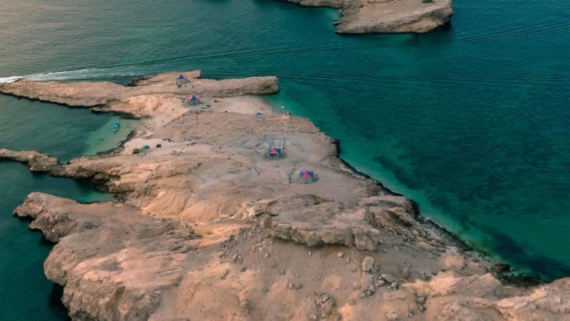 من السماء.. مصوّرة توثّق مشهدًا مهيبًا لجزر صخرية قبالة أهم شواطئ السلطنة