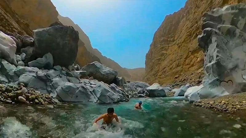 توثيق عُماني لوادٍ تتدفق مياهه بين صخور ذات حواف في إحدى الولايات “فيديو”