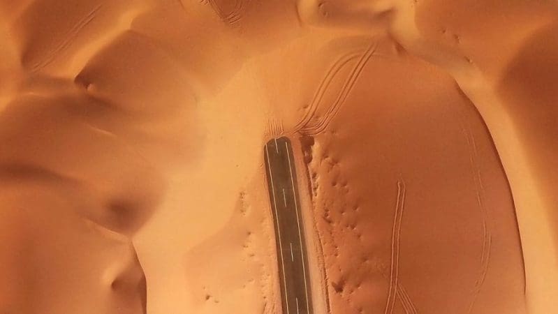مصور يوثق نزهة ساحرة عند نهاية طريق مغطى بالرمال