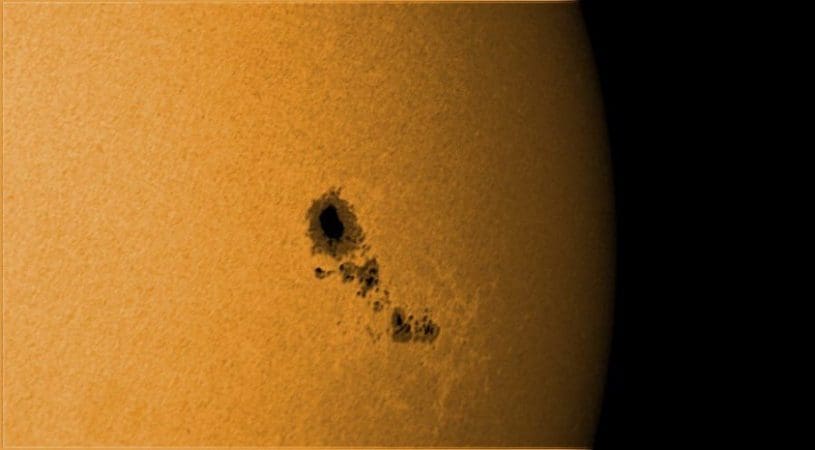 مركز الفلك الدولي يرصد بقعة شمسية ضخمة في قرص الشمس