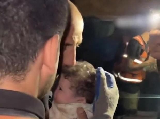 شاهد.. طفلة وُلدت خلال الحرب وخرجت من تحت أنقاض منزل قصفه الاحتلال