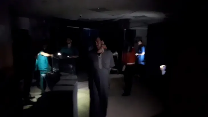 شاهد.. مستشفى بغزة يغرق في ظلام دامس بسبب انقطاع الكهرباء