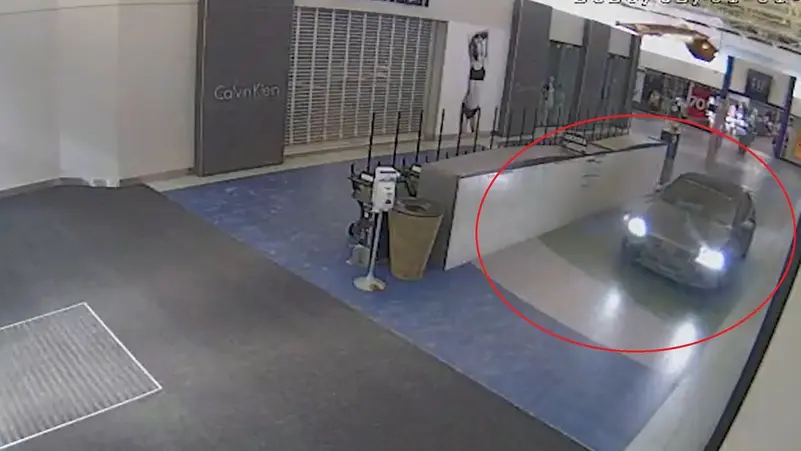 حادث سطو جنوني.. اقتحم مركزًا تجاريًا شهيرًا بسيارة مسروقة