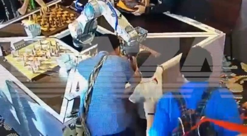 شاهد مباراة شطرنج تتحول لمأساة.. روبوت يهاجم طفلًا ويكسر إصبعه