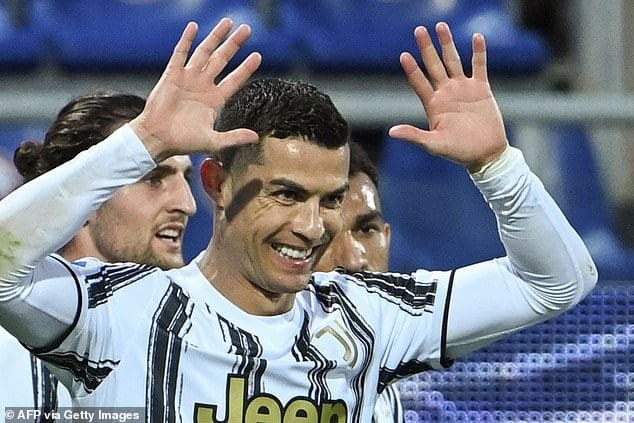 فرحة كرستيانو بالهاتريك في كالياري