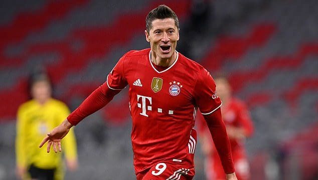 فرحة ليفاندوسكي بهدقه الثاني في بروسيا دورتموند