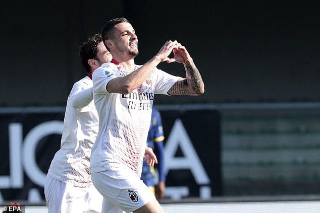 فرحة مهاجم الميلان بهدفه الثاني في المباراة