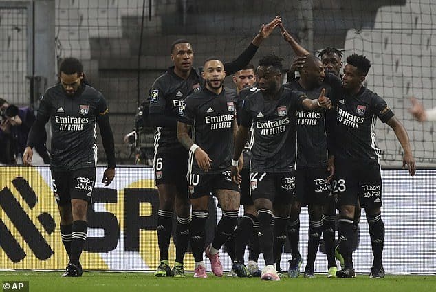 فرحة لاعبي ليون بهدف التقدم