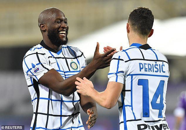 بيريسيتش يحتفل بالهدف مع زميله لوكاكو