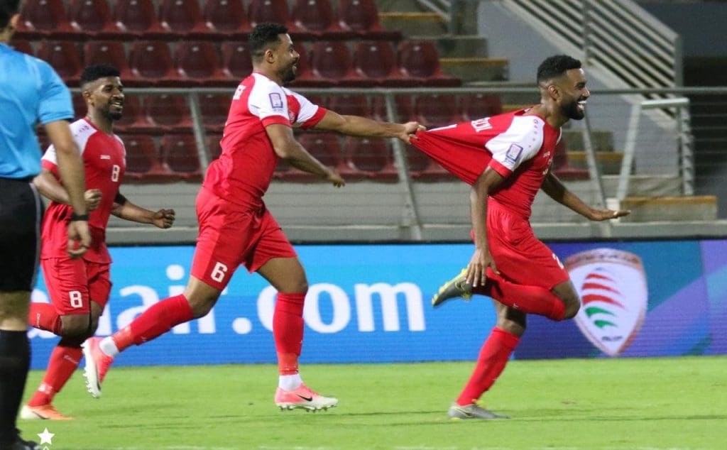 فرحة لاعبي ظفار بالهدف الثاني في شباك المصنعة