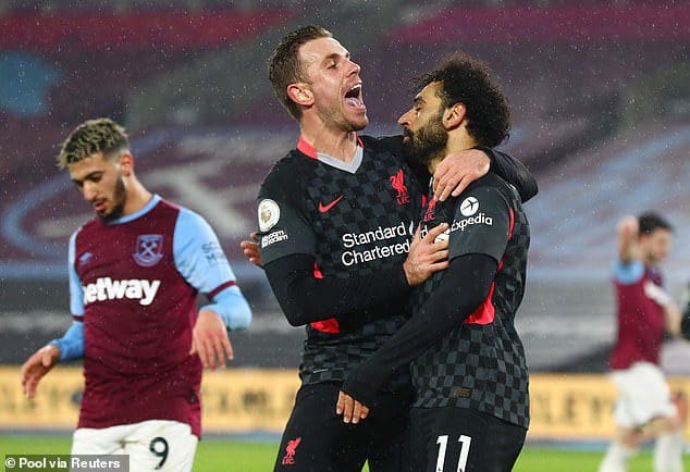 محمد صلاح يحتفل بهدفه مع هندرسون