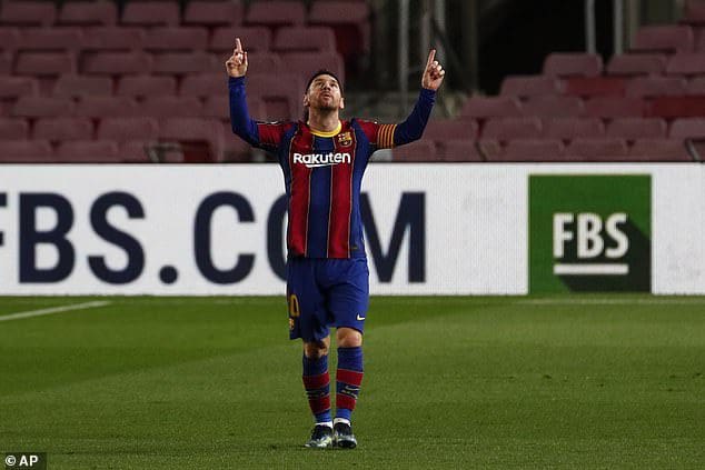 ميسي يحتفل بتسجيله هدفه الأول في المباراة