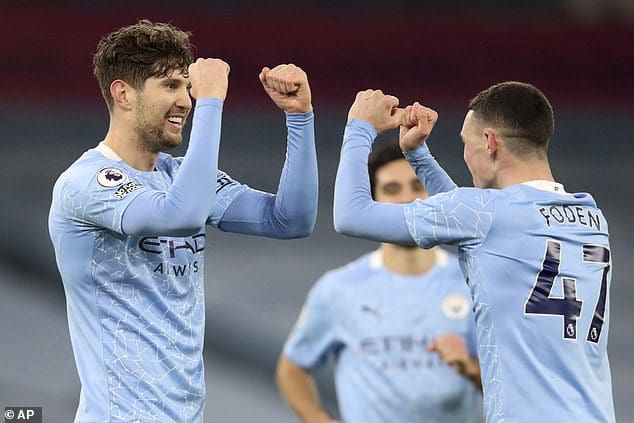 جون ستون يجتفل بهدفيه مع زميله فودين