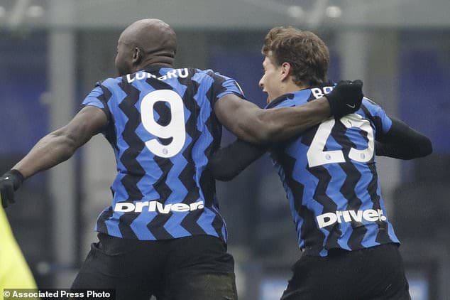 بريلا تحتفل بهدف في مرمى اليوفي مع لوكاكو