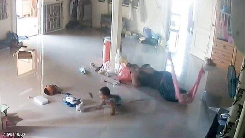 بحركة خاطفة.. فيديو لأم تنقذ رضيعها من “اللدغة المميتة”