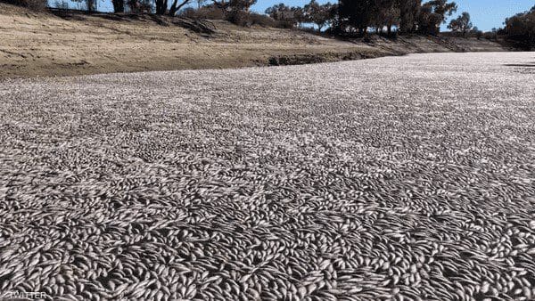 ملايين الأسماك تغطي نهرًا في مشهد لا يصدق “فيديو”