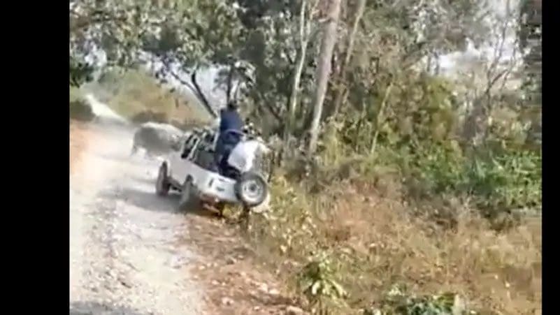 فيديو لوحيد قرن يدفع سيارة أمامه حتى قلبها بركابها
