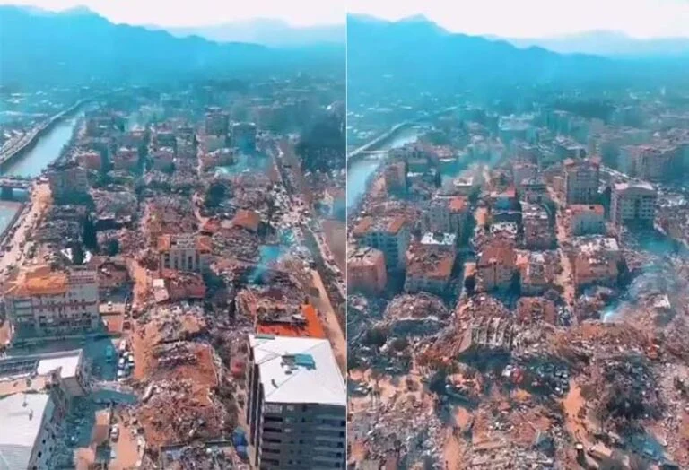 طائرة درون ترصد ما حدث في هذه المدينة بعد الزلزال “فيديو”