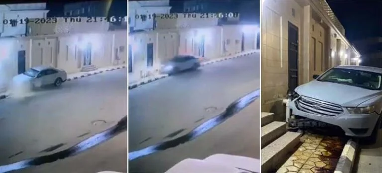 مقطع اصطدام سيارة بحائط نتيجة انشغال قائدها بهاتفه “فيديو”