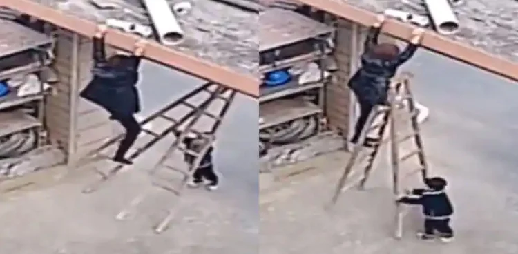 طفل ينقذ أمه من السقوط أرضًا في اللحظة الأخيرة