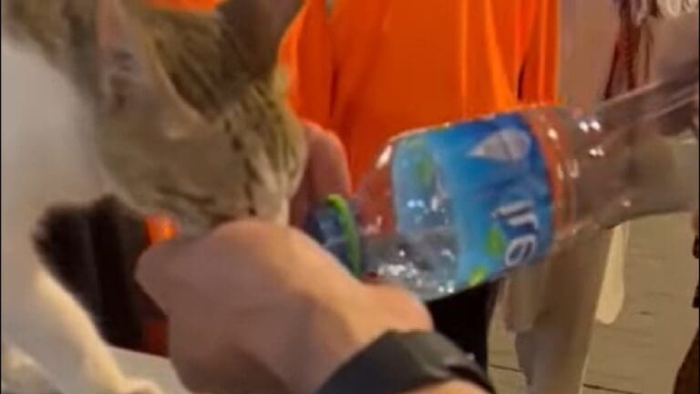 لفتة إنسانية.. رجل أمن يسقي قطة في الحرم المكي “فيديو”